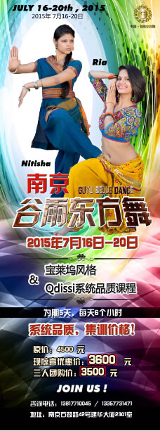 南京谷雨东方舞八周年庆典巨献活动系列-2015年7月谷雨东方舞重磅推出印度宝莱坞与印度古典舞融合风odissi系统课程。